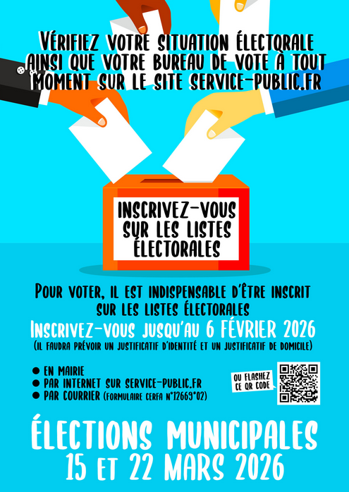 Si vous souhaitez voter aux élections municipales de mars 2026 alors que vous n'êtes pas inscrit sur les listes électorales, vous devez vous inscrire au plus tard le 6 février 2026.